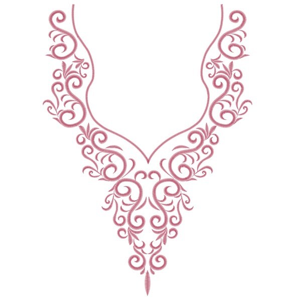 Traditional Algerian Terracotta Scroll V-Neck Embroidery – Warm Earth Tone Swirl Pattern | DST, PES, JEF, VP3, SVG, PNG