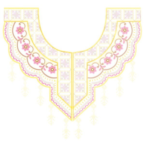 Traditional Algerian Golden Pink Chest Panel Embroidery – Premium Geometric Floral Yoke | DST, PES, JEF, VP3, SVG, PNG