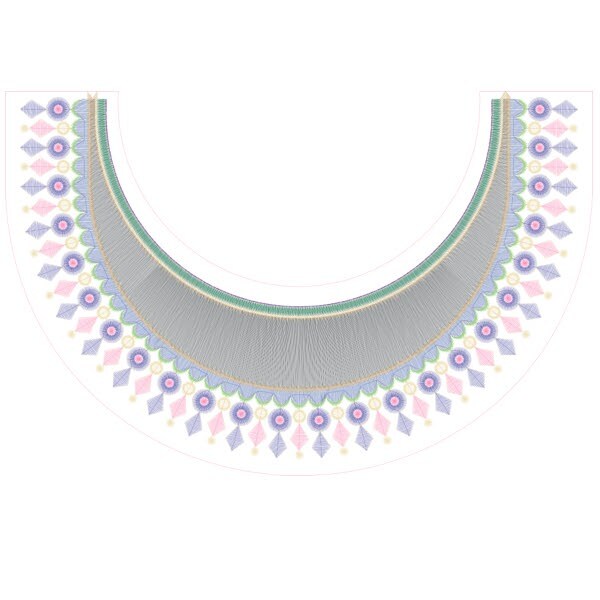 Traditional Algerian Multicolor Floral V-Neckline Embroidery – Rainbow Medallion Border | DST, PES, JEF, VP3, SVG, PNG