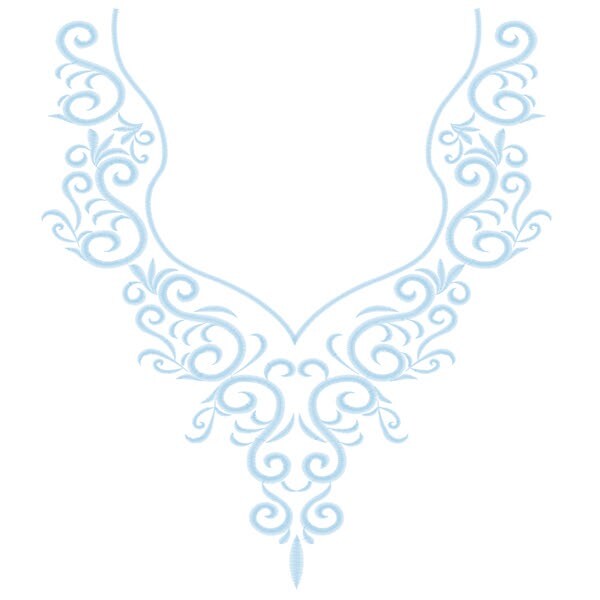 Traditional Algerian Light Blue Simple Floral Neckline Embroidery – Delicate Scroll Border | DST, PES, JEF, VP3, SVG, PNG